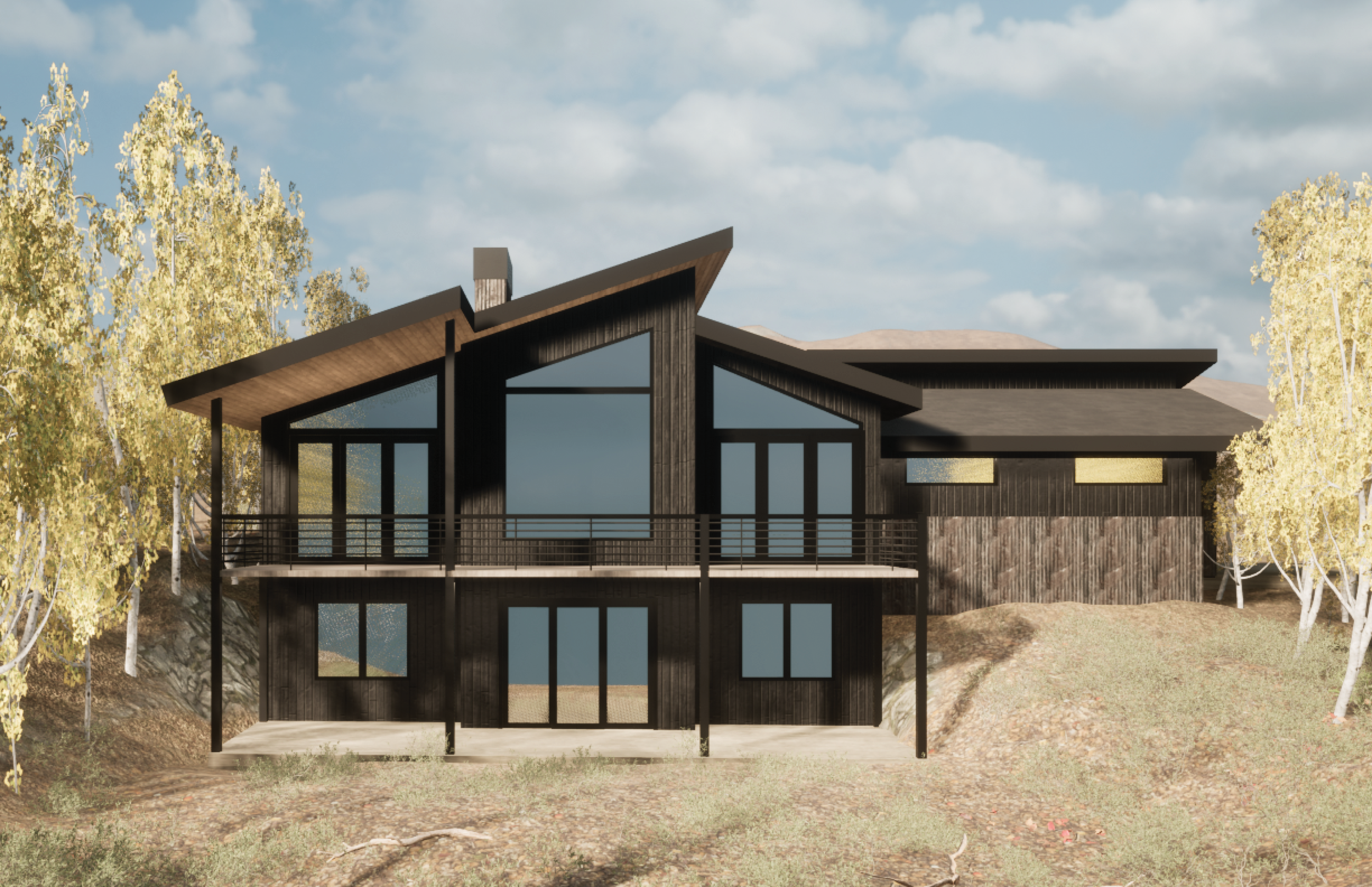 This modern cabin prioritizes efficiency in space planning to create large living areas and ample bedroom accommodations for guests. Expressive rooflines and clean detailing define the architecture, while expansive glazing strengthens the connection between indoor living and the natural exterior environment. The result is a composed and intentional home that feels contemporary, warm, and quietly confident.